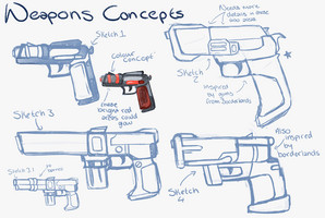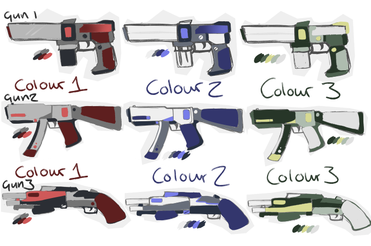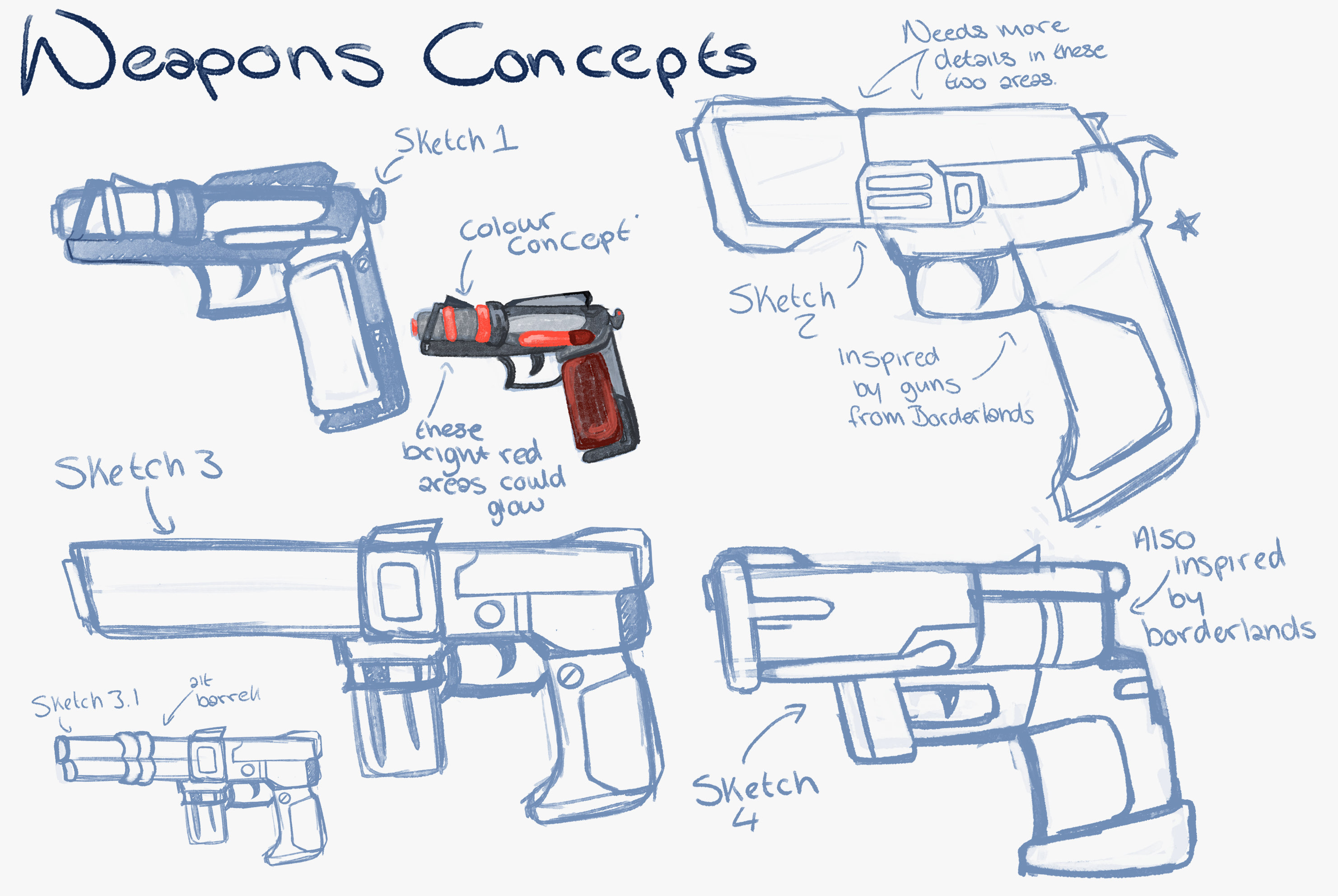 We have gone for a cute comedic style for our ships crew (targets). With a more menacing look for the guards. We have also been exploring weapons designs.