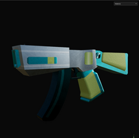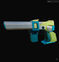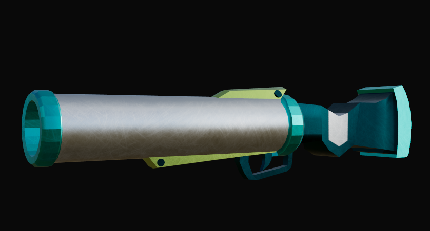 All the guns have been made in Maya and then exported to Substance Painter 3D to be coloured. I have created 3 different type of guns and also made a grenade launcher. At the moment these are the only guns available but in the future it is likely more weapons and items will be available. I wanted to give the guns a Sci-Fi feeling and cartoon, comic book style to them. To make them look more cartoon I wanted to keep a bright and consistent colour palette. This colour palette matches with the bright environment and also will match the colour scheme of the player.